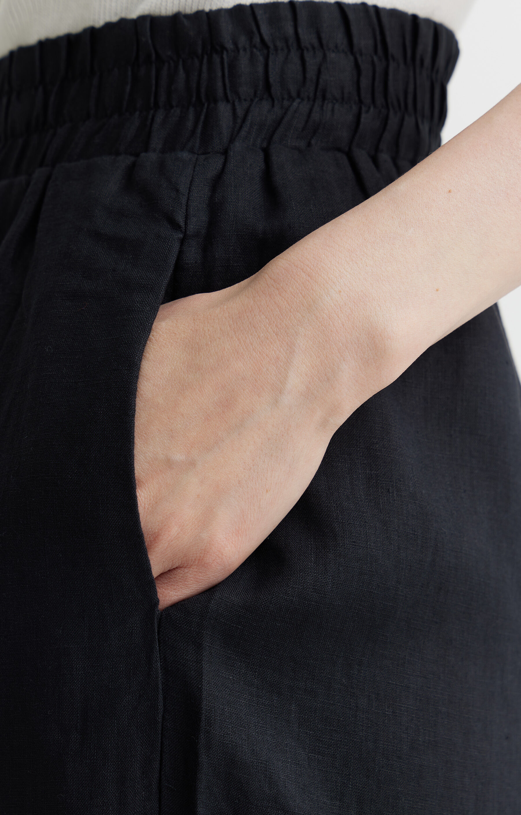 Spodnie damskie w kolorze czarnym typu wide leg to świetna propozycja na wiosnę i lato, łącząca elegancję z wygodą. Luźny krój typu wide leg zapewnia swobodę ruchów, a lekka tkanina z lnu jest przewiewna i przyjemna w dotyku, co sprawia, że są idealne na cieplejsze dni. Spodnie wyposażone są w elastyczną gumkę w pasie, co gwarantuje komfort noszenia i dopasowanie do sylwetki. Dodatkowo, boczne kieszenie stanowią praktyczny akcent, który sprawia, że są nie tylko stylowe, ale także funkcjonalne. To doskonały wybór na codzienne stylizacje, łączące casualowy luz z modnym wyglądem.