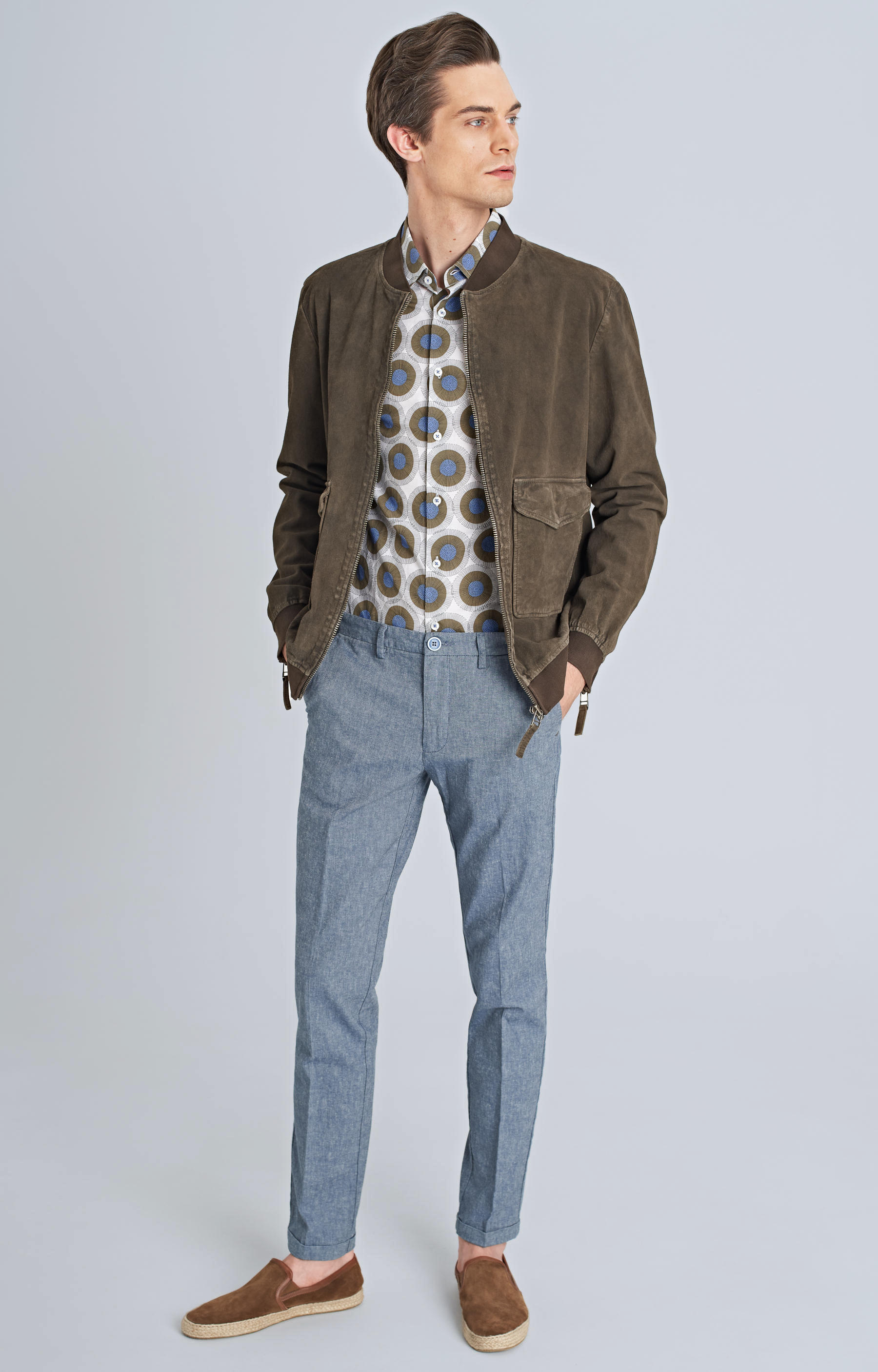 Skórzana, męska kurtka typu bomber jacket w linii Vistula Capri w odcieniach koloru brązowego. Zapinana na zamek, kołnierz oraz mankiety wykończone bawełnianym ściągaczem. Została wykonana z wysokiej jakości owczej skóry. Posiada dwie duże kieszenie boczne. Kurtka Puglia to idealne rozwiązanie w stylizacjach casualowych.