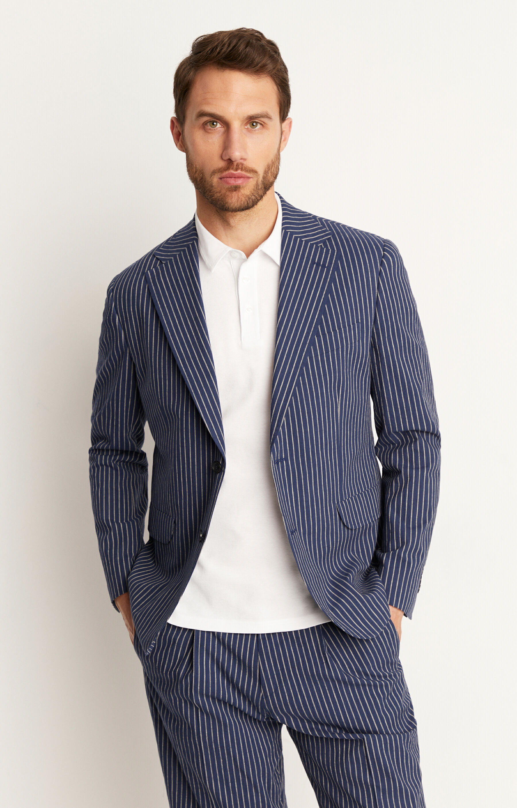 Jednorzędowy garnitur w paski 2O20RE1016