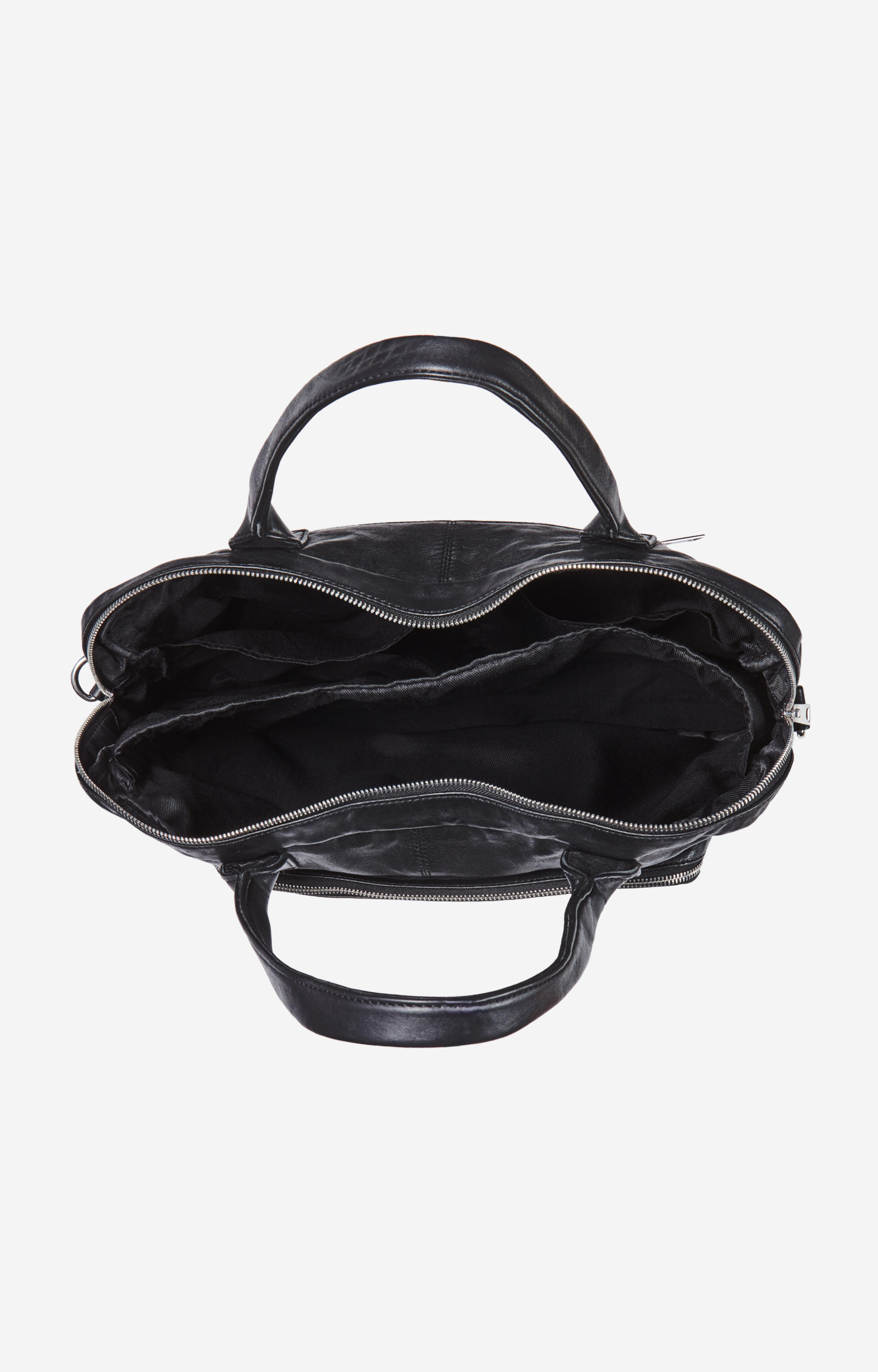 Torba męska Bontemp w linii Vistula w kolorze czarnym. Została wykonana z wysokiej jakości skóry naturalnej z bawełnianą podszewką. Od góry zamykana jest zamkiem błyskawicznym. Wewnątrz jedna duża przegroda oraz małe kieszonki na akcesoria. Z przodu oraz tyłu torby znajduje się zewnętrzna kieszeń zapinana na zamek. Torba ma pasek do noszenia na ramieniu wykonany ze skóry.